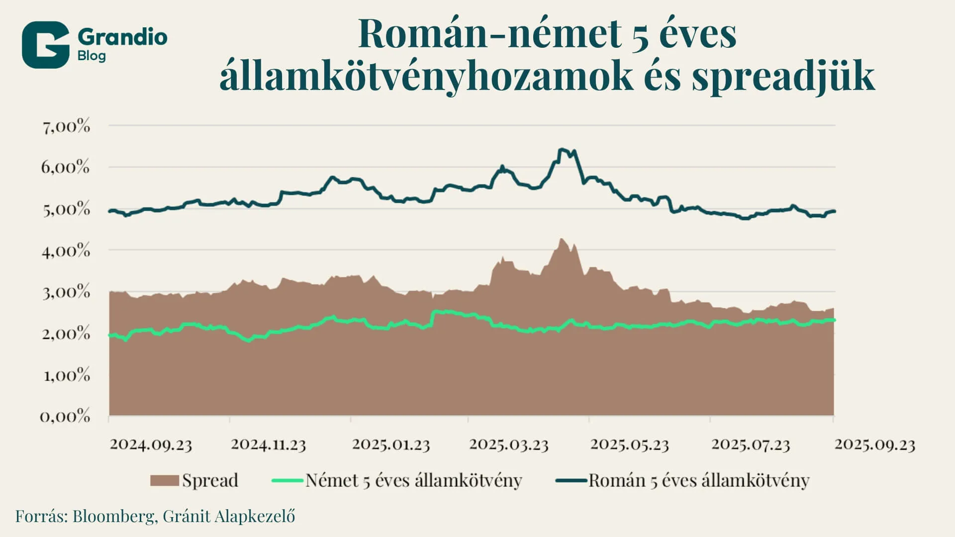 Az idei év egyik legszemléletesebb példáját Románia kínálta arra, hogyan nyílnak meg vonzó hozamlehetőségek a kötvénypiacokon. A májusi választások körüli politikai bizonytalanság hatására hirtelen megugrottak a román állampapírok felárai, ami kedvező beszállási pontot teremtett a befektetők számára. A nyár folyamán ehhez társult a közel 9 százalékos költségvetési hiány miatt bevezetett drasztikus fiskális szigorítás: adóemelések, közszférát érintő megszorítások és a deficitcsökkentést célzó reformok. Bár ezek pénzügyileg indokoltak voltak, a társadalmi ellenállás és a politikai viták miatt a bizalom ingadozó maradt, a hozamfelárak pedig magas szinten stabilizálódtak.