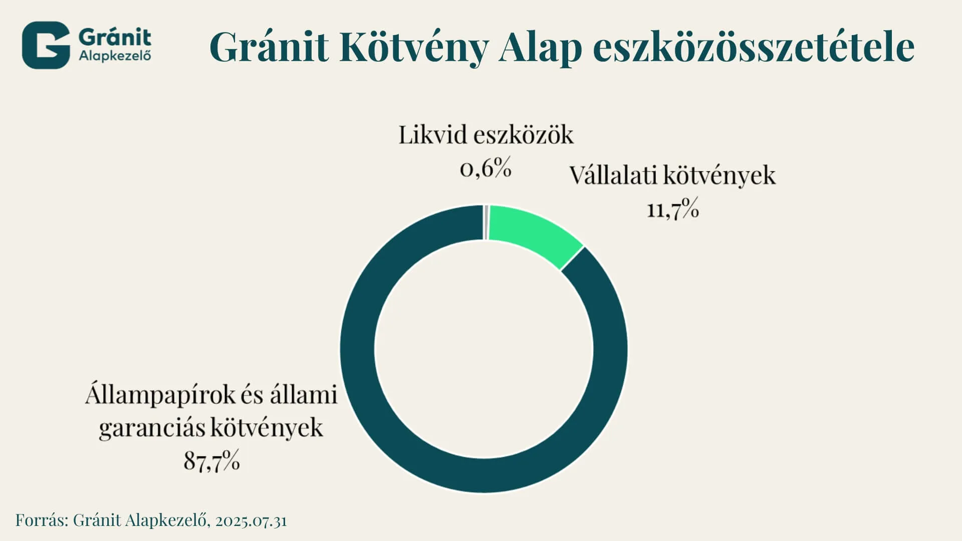 A Gránit Alapkezelő portfóliója ehhez széles eszköztárat kínál: a Gránit Kötvény Befektetési Alap kifejezetten a kötvénypiac mozgásait célozza meg, elsősorban a hosszabb lejáratú kötvényekre fókuszálva. Az alap sokszínű kitettséget kínál: a befektetési állomány túlnyomó többségét a Magyar Állam által kibocsátott fix kamatozású állampapírok alkotják, de az összetételt tovább árnyalják az egy éven belüli, alacsony árfolyam-ingadozással rendelkező instrumentumok, devizában kibocsátott állampapírok, állami garanciával bíró közepes kockázatú kötvények, jelzáloglevelek, valamint hazai és külföldi társaságok által kibocsátott, magasabb hozamú, hosszabb futamidejű hitelviszonyt megtestesítő értékpapírok és devizás eszközök is.