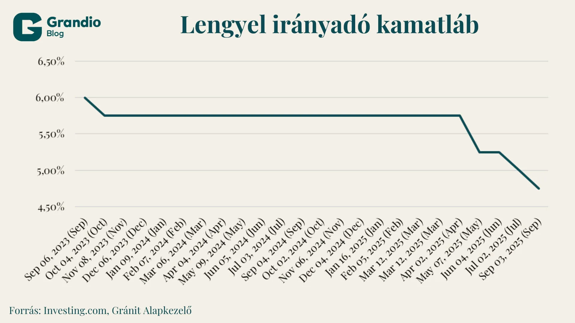 A Lengyel Nemzeti Bank szeptember elején harmadszor is kamatot csökkentett az elmúlt öt hónapban. A Monetáris Tanács 25 bázispontos vágással 4,75 százalékra mérsékelte az alapkamatot, miután az infláció 2,8 százalékra esett vissza augusztusban. A jegybanki kommunikáció szerint az inflációs nyomás enyhülése tette lehetővé a kamatláb módosítását, azonban a lazának mondható fiskális politika továbbra is kockázatot jelent az árstabilitásra nézve. A tanács tagjai megosztottak a további lépéseket illetően. Az elemzők további egy, 25 pontos vágásra számítanak még idén. A jegybank következő döntéseit azonban nagyban befolyásolja majd a novemberben publikálandó új gazdasági előrejelzés, különös tekintettel a béremelkedési nyomásra és az infláció középtávú pályájára.
