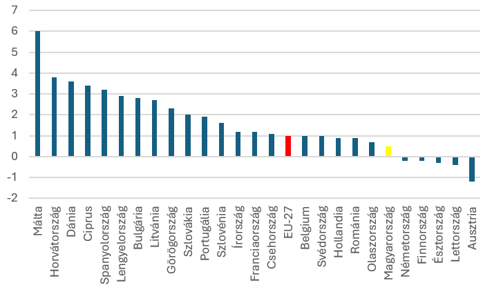 1. ábra: Az egyes tagországok GDP-változása 2024-ben (%)